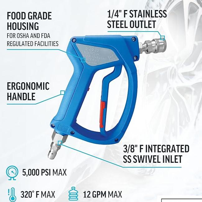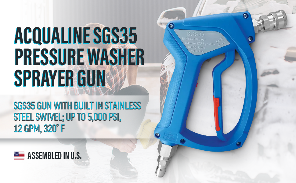 MTM Hydro Acqualine SGS35 Pressure Washer Gun with Stainless Steel Quick Connect Fittings and Live Swivel, High Pressure up to 5000 PSI, 12GPM, 320° F